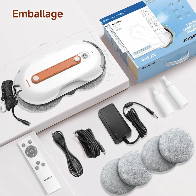 Pour comprendre l’efficacité d’un robot lave-vitre, il faut regarder ses caractéristiques brutes. L’AlfaBot X7 n’est pas seulement un appareil esthétique ; il embarque des composants conçus pour la puissance d’aspiration et la précision.