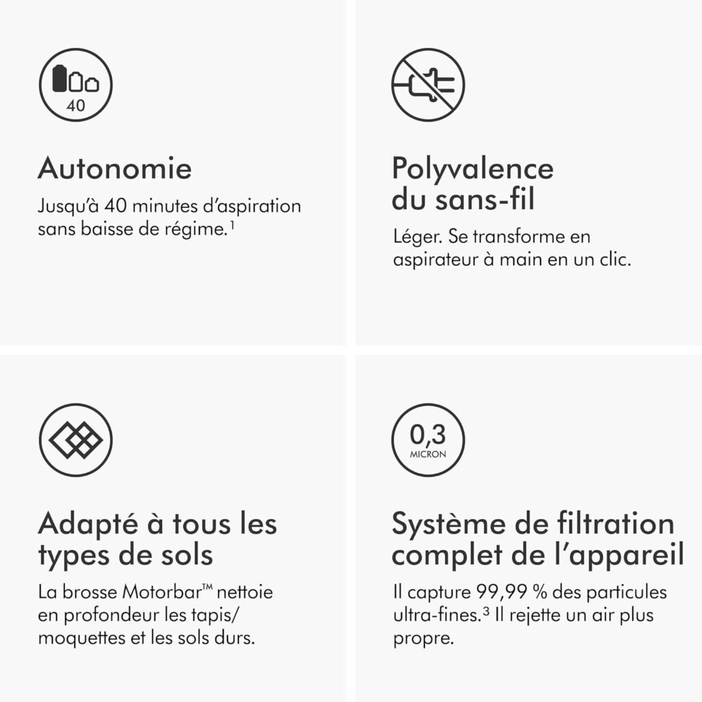 Vous payez pour l’essentiel : une puissance d’aspiration constante et une brosse qui ne s’emmêle pas. Si vous avez un appartement avec beaucoup de parquet, l’absence de la brosse « Fluffy » (douce) sur la version Origin se fait sentir, mais la Motorbar s’en sort très bien si on ne cherche pas la perfection absolue sur les sols très brillants. Pour moins de 300 €, c’est un appareil qui fera son travail pendant 5 à 7 ans sans sourciller, ce qui le rend bien plus rentable que des modèles « low-cost » qui perdent leur souffle après 18 mois. j’ai une cliente qui l’a encore aujourd’hui alors qu’elle l’a acheté dès sa sortie.