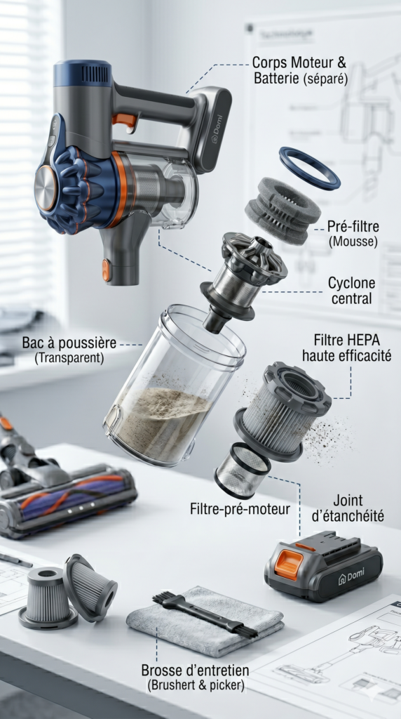 La filtration est un point technique souvent négligé. Je recommande uniquement des modèles équipés de filtres HEPA (High Efficiency Particulate Air). Un aspirateur qui rejette des microparticules par son évacuation moteur est une catastrophe pour les allergiques. L’étanchéité du bloc moteur est indispensable pour que l’air sortant soit plus propre que l’air entrant.